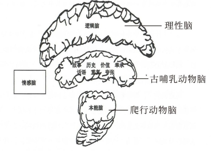 神经科学家弗雷斯科在一篇名为《销售神经学》的论文中提到了人的三个大脑—本能脑、情感脑和理性脑。