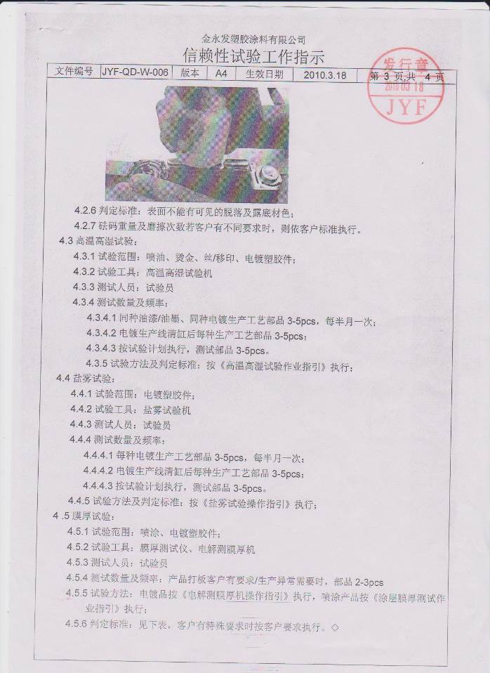 这里包括材料性能测试结果和成品性能测试结果,主要分为两种情况:一种是有些项目材料测试了,成品可不测,如ROHS检测。另一种是有些项目只能在成品或半成品测试,这个要看客户认可的试验大纲,试验大纲可不提交,但大纲的检测项目必须提供完整的证据。以下是一个实验大纲的案例,仅供大家参考。