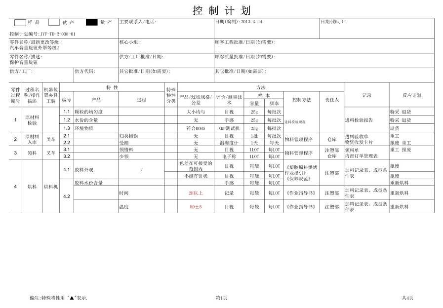 生产-对产品/过程控制特性、影响特殊特性的过程控制、相关的试验以及在产品形成规模和正常生产过程中使用的测量系统等形成文件。根据组织的判定,还可以包括其他内容。