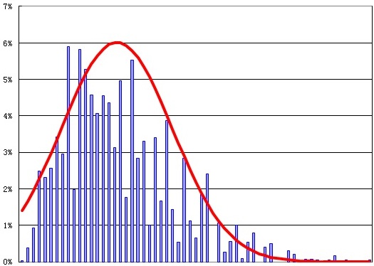 峰度大于0表示分布比正态分布更集中,呈尖峰状,如图7-4所示。