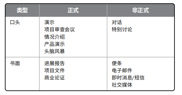 表2-10 沟通类型(来自PMBOK第七版)