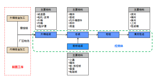 图7-5 洗衣机装配流程图及主要物料分布