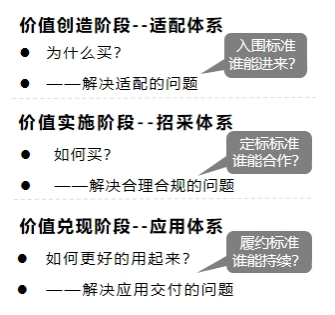 (2招标采购时价值实施阶段的核心关键在于引入适配的供应商建立合作,即参与投标的供应商都是同一个档次,防止出现劣币驱逐良币,最终的定标价相对也会合理。