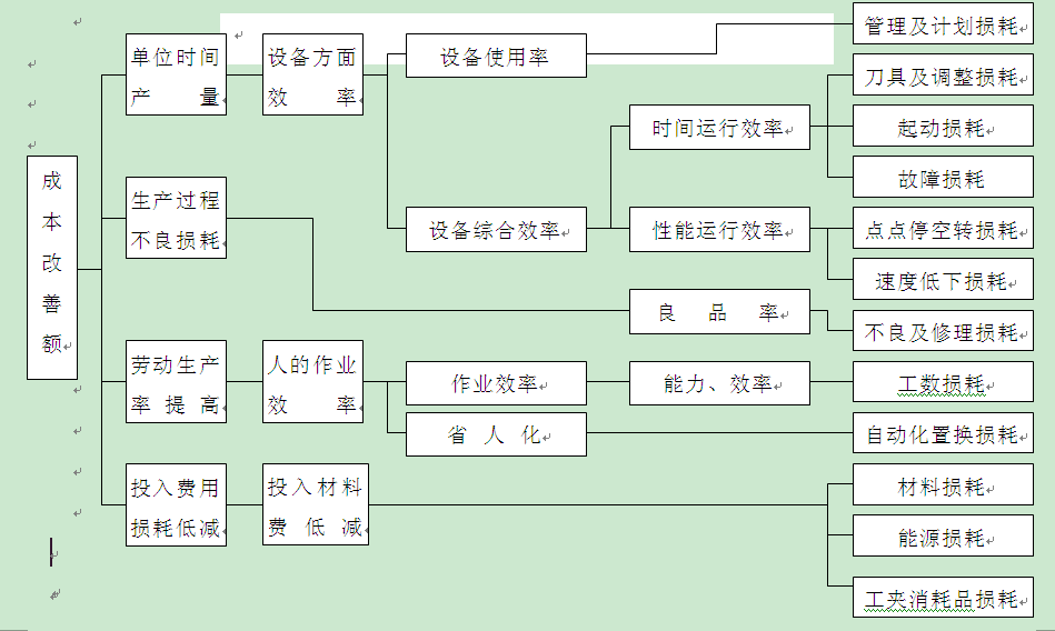 任何一项大的改善课题都可以建立一个如图4-4所示的指标体系图,用来指导、计划和评价改善活动及改善活动的成果。