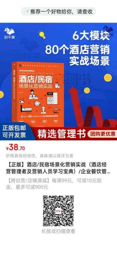 彭老师在实干家视频号平台为购书读者准备了超值线下课程福利!只要您在视频号平台购买《酒店民宿场景化营销实战》这本书,凭借购书截图,即可享受众多线下课程对折优惠,轻松节省大几百块!