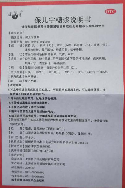 图3-4 保儿宁糖浆说明书