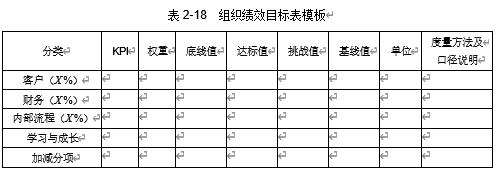 标值,设置每年 X %的目标提升要求。目标值没有绝对的标准,由企业内部管理层讨论决定,通常 3%~5%是比较合理的,当然,对于原来比较糟糕的指标,可以适当提高这个比例。经过反复沟通后,形成共识,如表 2-18 所示(可根据公司实际需要增减栏位)。