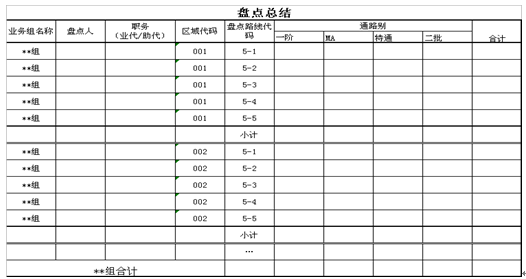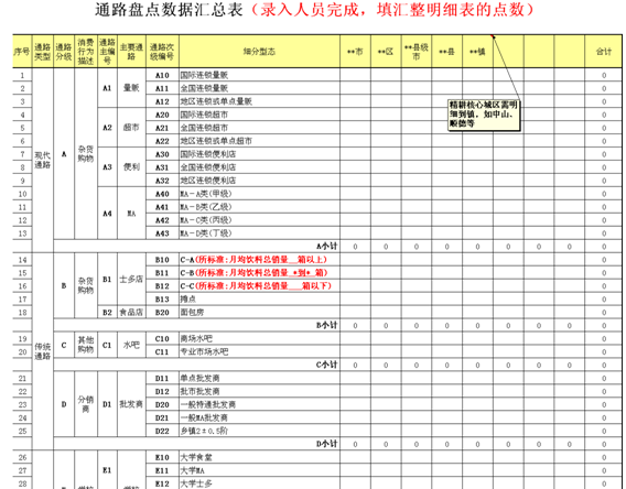 1) 《盘点总结表》为盘点人每天盘点出的各类型通路客户数量的汇总表。