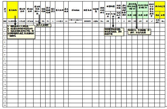 2) “售点编码”栏由录入人员完成,4位营业所代码加6位流水号,在完成全部盘点的电子档,确定下一年度精耕的点后,再一起编制售点编码。