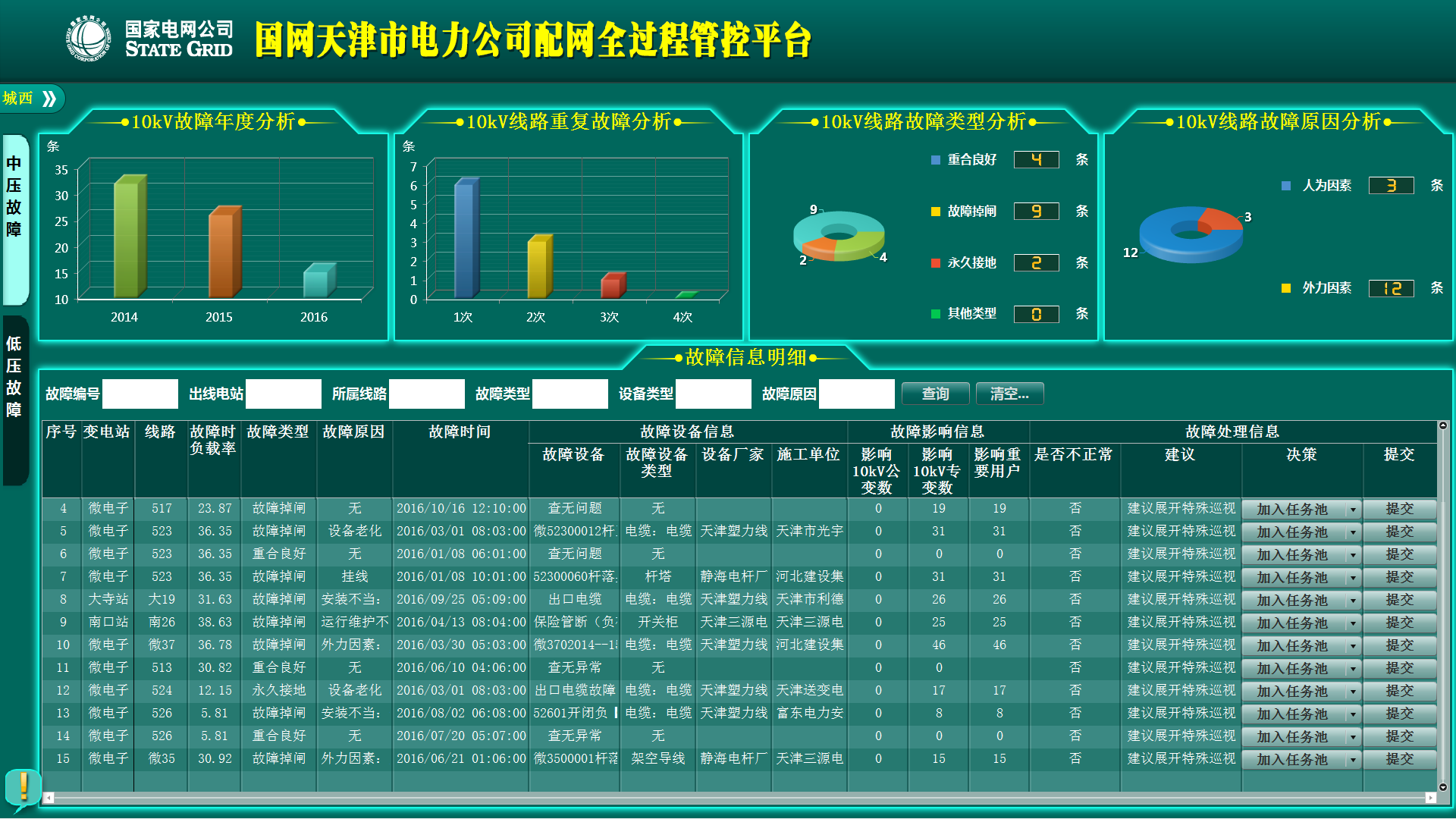 系统里按照发生时间、重复故障、故障类型、故障原因等方面进行分析,形成故障信息明细,并智能地提出合理化建议,包括加入检修计划任务池,开展特殊巡视以及向上级部门提出技改大修意见,班组人员可根据系统的建议进行决策,为后续的工作打下良好的基础。