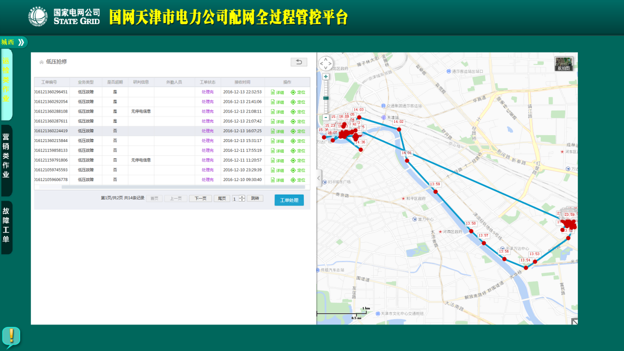 在抢修作业中,同样可在系统中看到线路名称、工单编号、工单状态、工作时间等基本信息,还可对抢修轨迹进行监控,让班组成员直接看到抢修进行的过程和路线,为抢修分析、绩效考核等提供强有力依据,为今后更安全更有效率地开展抢修工作打下了坚实基础