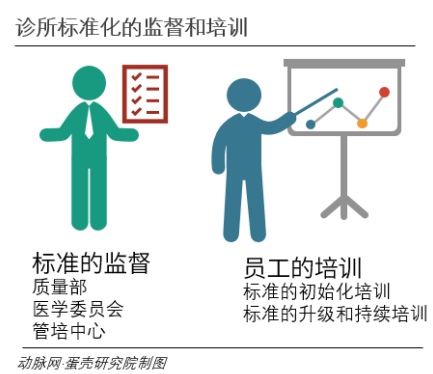 每一家连锁诊所在开业前三个月,就开始进行标准的初始化培训。质量部、医学委员会和管培中心的人员进去,把整个开业的流程梳理清楚,培训到位。开业之后的三个月,再通过质量部进行管控和追踪,就能保证连锁诊所能够按照设定的方式和方法进行经营。