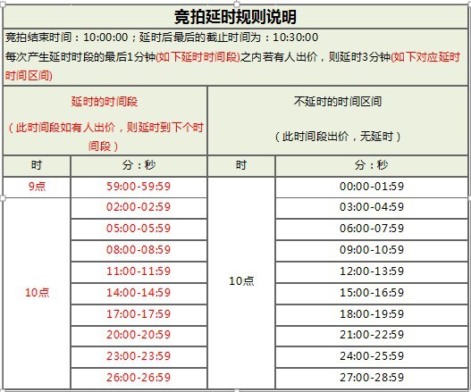 表10-1竞拍延时规则