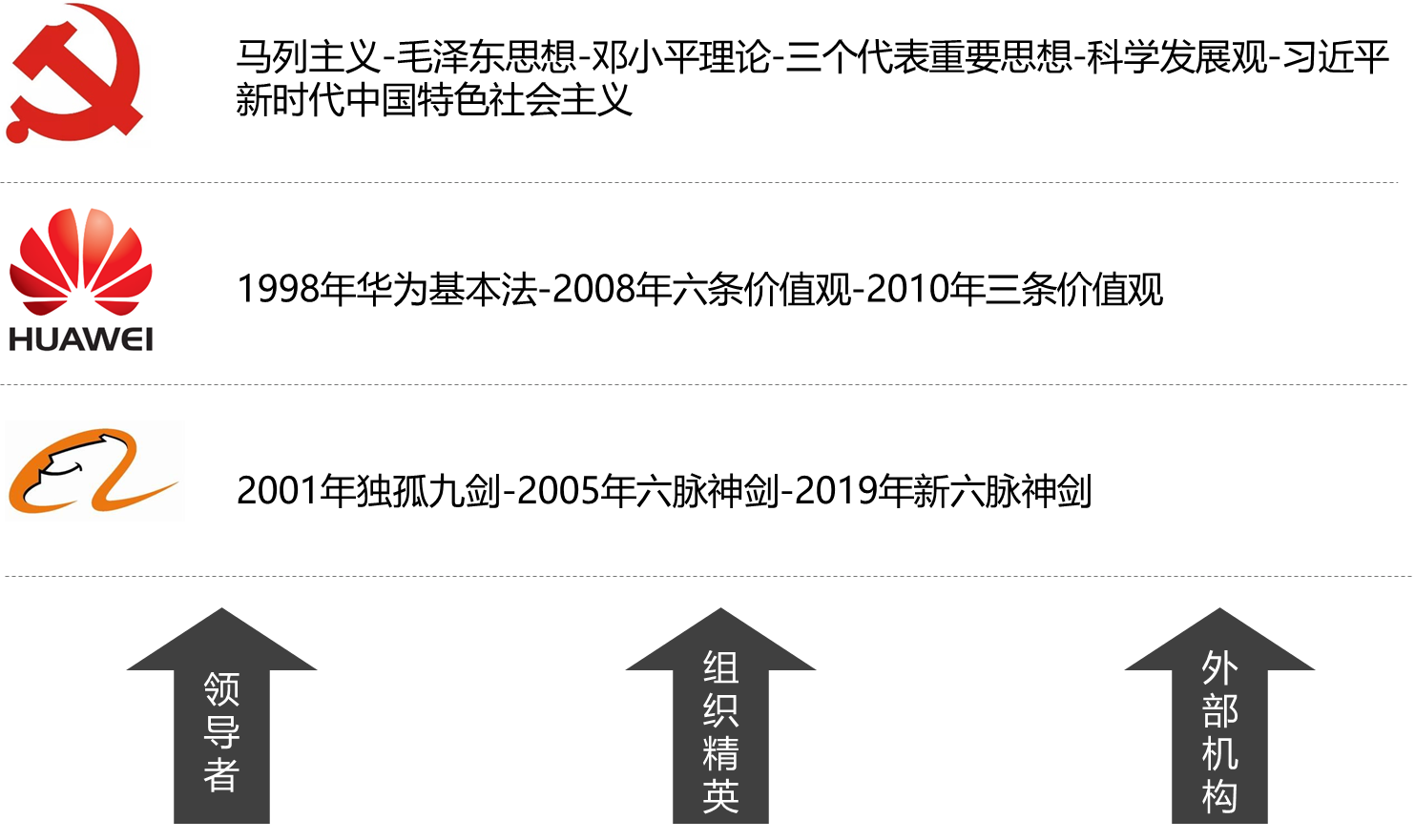 根据我们的总结和实践,组织价值观的确立通常由三种力量在推动。