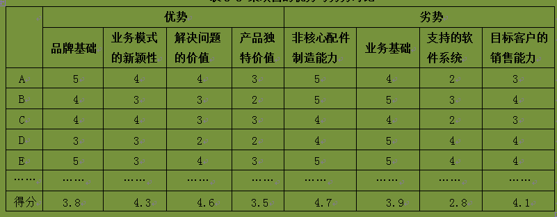 表5-5 某项目的优势与劣势对比