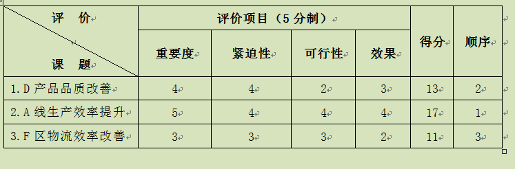 焦点改善活动是涉及企业内所有部门的活动,为了集中企业(人力、物力)资源解决那些最重要的问题,企业可以根据某一阶段的需要来决定改善的主攻目标和改善活动开展的优先顺序。