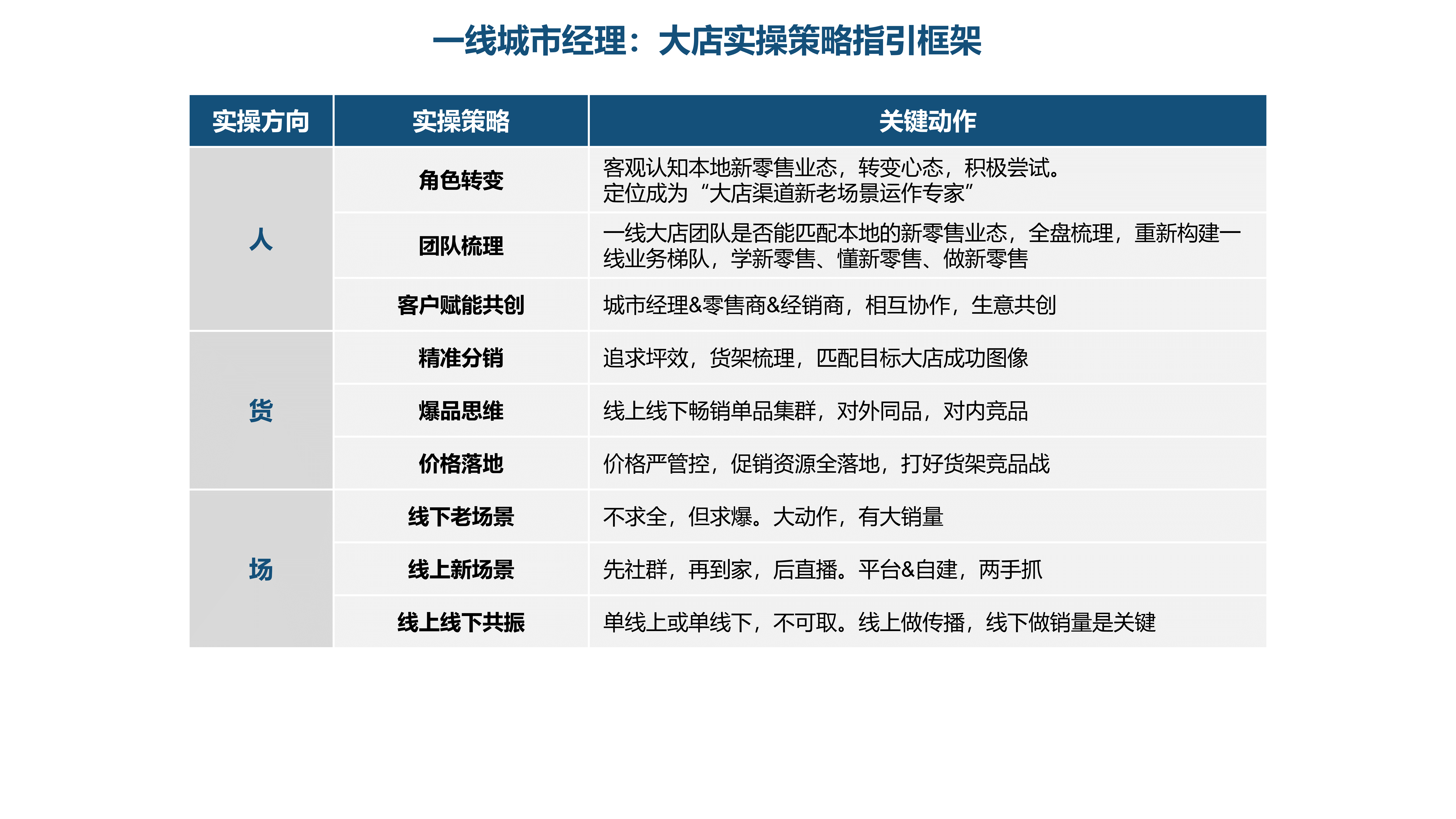 在与客户的协作中,城市经理要结合市场发展趋势,与经销商、零售商相互协作,相互赋能,生意共创。过去的大店生意,相对追求服务和客情,也是经销商最依赖的生意,但现在正面临危机和挑战。
