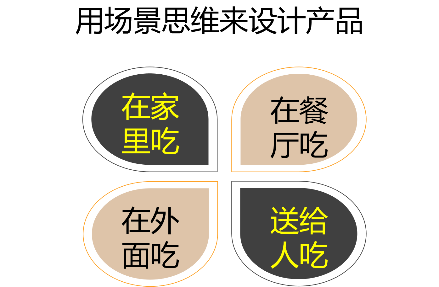 我们可以把消费者吃牛羊肉的场景划分为四种,然后再依据四个不同的消费场景来划分产品,消费者就容易选择和购买了,就是减轻消费者的选择综合征。