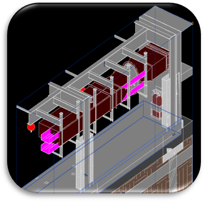 以桥架、风管、结构梁碰撞案例为例,详述碰撞检查的过程。电气一次专业、结构专业及暖通专业在建筑专业提资的轴网中分别进行电缆桥架设计、梁柱设计和通风管道设计,各自完成设计后将各专业模型提交至平台,形成全专业的模型。利用平台的碰撞检查功能,系统自动提示桥架、风管、结构梁三者发生碰撞。经过多专业沟通协调,一次专业及暖通专业分别调整桥架及风管安装高度,一次专业调整桥架安装位置,实现协同设计。图4-7为碰撞检查前后的模型对比图。