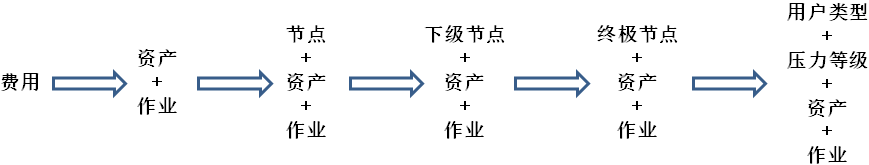 第五步,终级节点本身代表压力等级,且服务不同的用户类型,从而将"终级节点+资产+作业"的成本分摊到"用户类型+压力等级+资产+作业",实现多维组合成本。