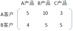 对A客户:A产品销量5个,B产品销量10个,C产品销量3个。