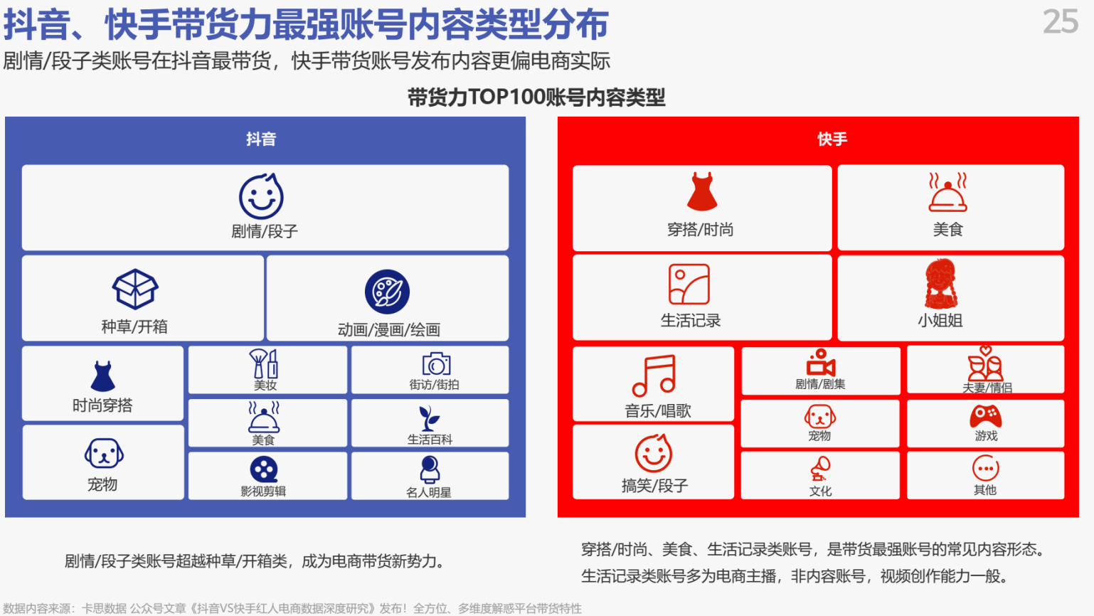 图5-18 抖音和快手带货力最强账号内容类型分布