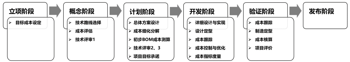 在研发体系优化项目中,项目团队将成本管理流程作为改进重点。咨询师在产品开发流程中增加了成本管理的典型活动,比如目标成本设定、成本分解、设计评审、成本跟踪等,并在项目目标中明确设定了成本相关的KPI指标。如图4-3所示。