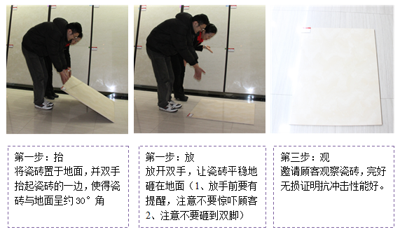 感觉对比:拿一个块杂牌的砖和我们自己的砖放在地上,让顾客在上面走让顾客自己感知