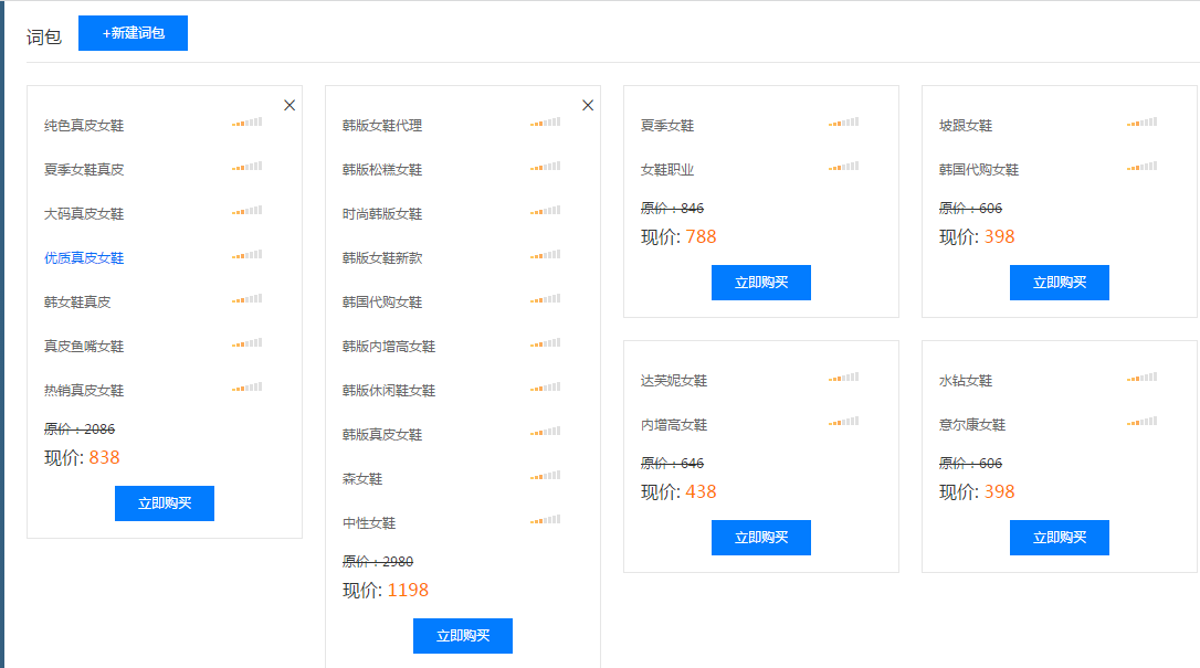 另外还有词包,相当于将几个词打包做标王,且在原来基础上打折。