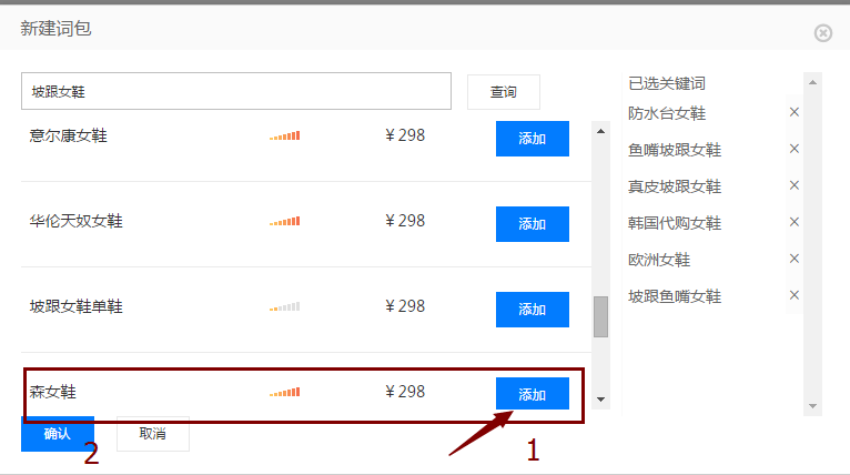 我们再来看下面的词,很多人想知道这个词到底是不是好词,或者说会不会被市场上的商家所认可。我们可以看到,只要出现关键词了之后,下面就会出现相关的词。如果觉得自己喜欢的词价格过高,可以选择相似的词。比如说,我输入的是韩版女鞋,人家买了,我可以买坡跟女鞋或者是欧美女鞋。