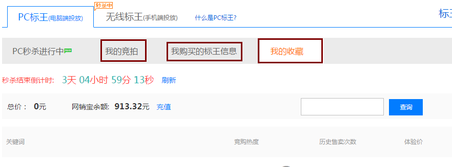 先进入网销宝页面,然后点击标王,再进入如图11-2的页面。