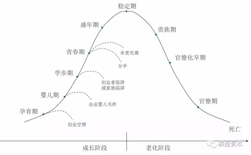 美国人伊查克·爱迪斯曾用20多年的时间研究企业如何发展、老化和衰亡。他写了《企业生命周期》,把企业生命周期分为十个阶段,即:孕育期、婴儿期、学步期、青春期、壮年期、稳定期、贵族期、官僚化早期、官僚期、死亡。爱迪斯准确生动地概括了企业生命不同阶段的特征,并提出了相应的对策,指示了企业生命周期的基本规律,提示了企业生存过程中基本发展与制约的关系。