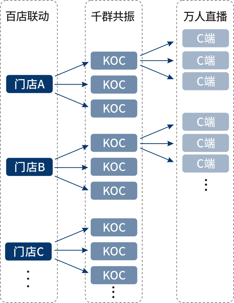 在直播模式的推动上,我们也总结出三种策略:单店滚动策略、小区域滚动策略、全国轰动策略。30