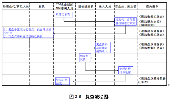 说明:图3-6为通路盘点复查的流程图,即复查的方法步骤及所用表单。