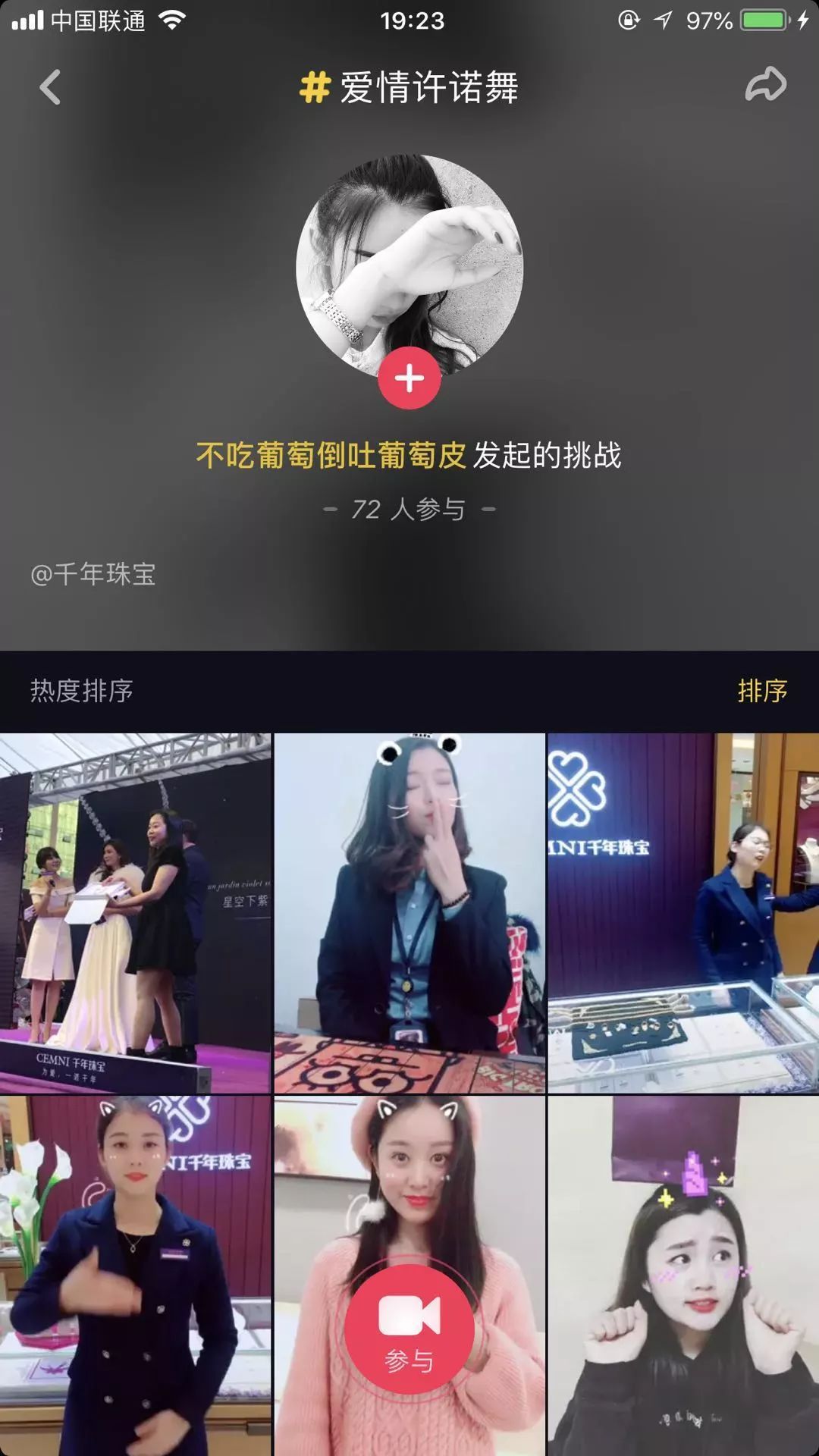 2018年2月,千年珠宝联合抖音,举办了“爱情许诺舞”视频录制大赛。