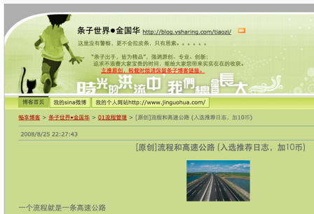 流程与公路的经典故事,是我多年前第一次尝试通俗地介绍流程理念的一篇文章,最早发于2008年,发表在畅享网(见下图)。