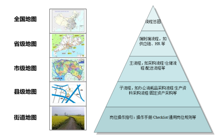 (1)企业流程网也像公路网一样,是需要分级设计和管理的。公路有国家级公路、省级公路等,流程也有公司级流程、部门级或事业单元级流程。