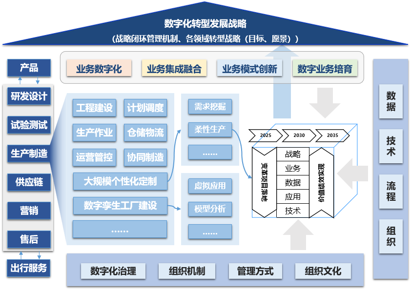 数字场景创新作为支撑企业数字化转型体系架构落地的最优解,以战略目标为指引,推动业务创新、核心能力和支撑体系的融合实现,确保技术与业务对齐、项目与价值对齐,助力企业数字化转型发展与价值创造,如图3.5所示。