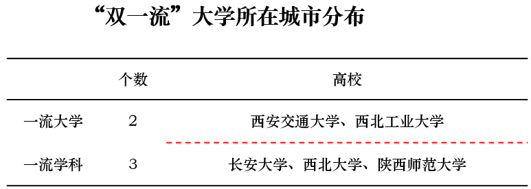 知名大学的创新活力影响和带动城市的创新活力水平。关中城市群“双一流”大学共有5所,都分布在西安,代表西安创新活力较强。