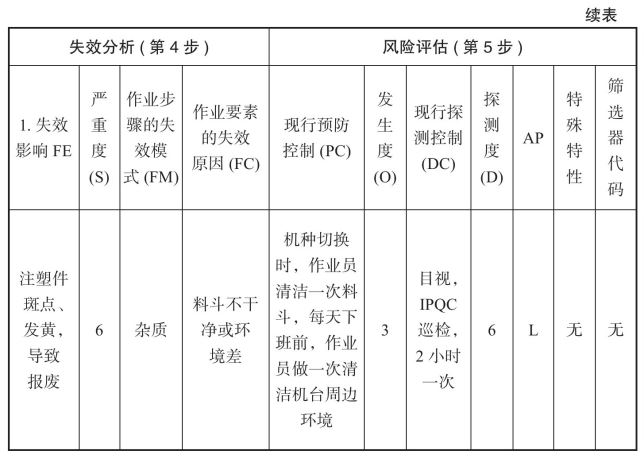 比如料有杂质,导致注塑件有杂质,可能导致50%左右的产品报废,其他产品要维修,评分7分。料没有烘干,导致产品结构异常、尺寸不良,100%报废,评8分。严重度评分一定要先把失效分析全部做完才可评分。