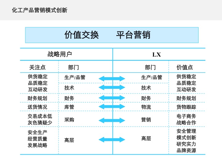 通过对公司营销现状的梳理、化工行业关键成功因素的分析、用户的“三者分析”、营销模式创新五因素和三个创新点的分析,LX进行了营销模式的创新。主要内容如下。