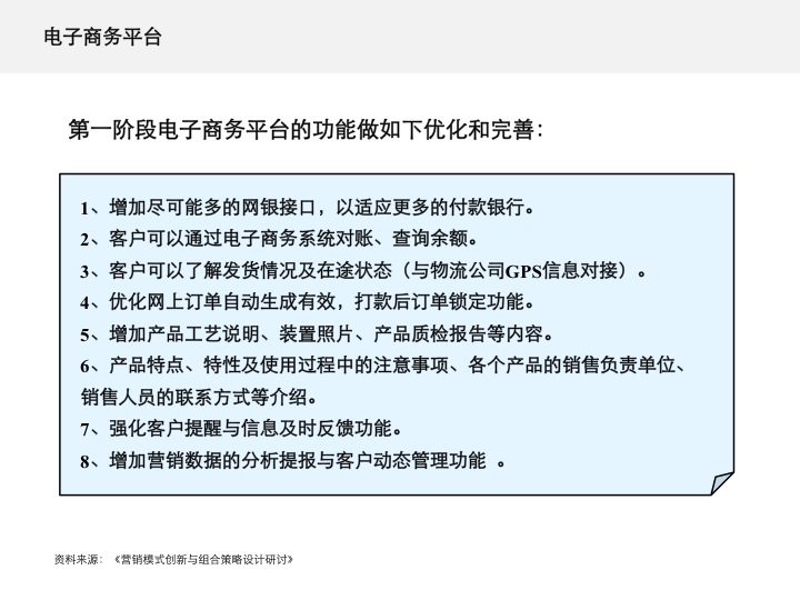 案例启示:营销政策的差异不是营销模式的创新,营销模式创新需要系统的分析与整体的设计。同质化、标准化的工业品的营销,完全可以导入电子商务。电子商务平台必须以实体企业为依托,才可解决交易的信任问题。