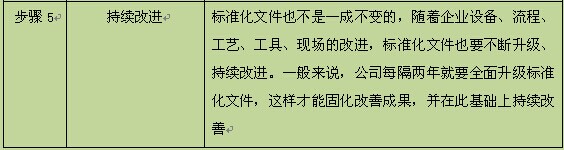 标准作业体系可以帮助新员工加快学习速度,确保所有员工都能通过标准化作业指导书了解相关要素,保证企业管理的公平与正规。没有标准化,企业不可能维持较高的管理水平。