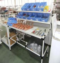 立体布置首先要注意作业台的选用,需要使用较多工具的工序可以选用带有工具抽屉和工具架的作业台;需要同时使用不同规格、型号的材料或零件的工序可以选用带有多层零件盒或物料盒的作业台。