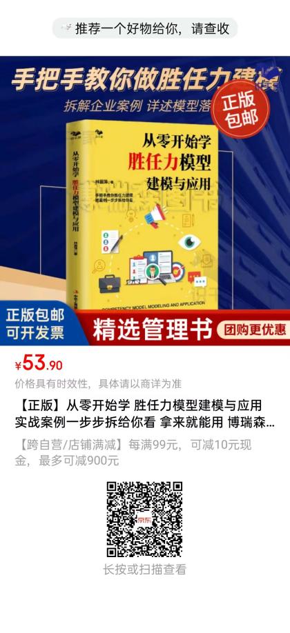 若想系统学习胜任力建模,推荐林丽萍老师的《从零开始学胜任力建模与应用》。书中不仅详细拆解了胜任力的底层逻辑、建模步骤与工具,还结合互联网、能源、半导体等多行业案例,直击企业在人才标准建设中的痛点。从冰山模型的理论解析到 “十大陷阱” 的避坑指南,再到模型在选育用留中的实战应用,内容兼具专业性与实操性,无论是 HR 从业者还是企业管理者,都能从中获得建立科学人才标准的方法论,助力企业精准识人、高效育人。