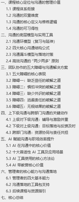 第三讲曾围绕人际关系层面的沟通模型展开,而本次课程重点聚焦企业组织管理层面 —— 沟通不仅是人际互动工具,更是核心管理动作。对于中高层管理者、领导者及企业老板而言,跨部门协作、上下级对接、目标落地等关键管理场景,均需以高效沟通为支撑。