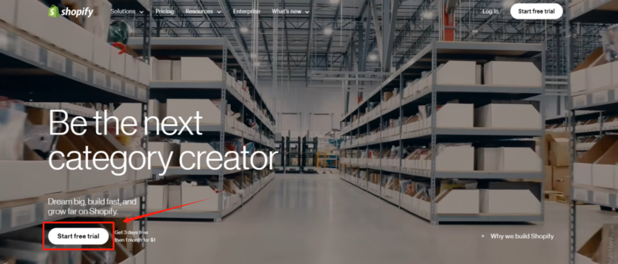 首先,访问Shopify官网注册账户并开始免费试用(如下图所示)。在输入一些基本的业务信息并选择销售区域后,创建你的Shopify ID,即可进入商店主页。