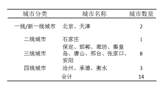 根据新一线城市研究所最新的城市分类,京津冀城市群14个城市共有新一线城市2个、三线城市8个、四线城市3个。